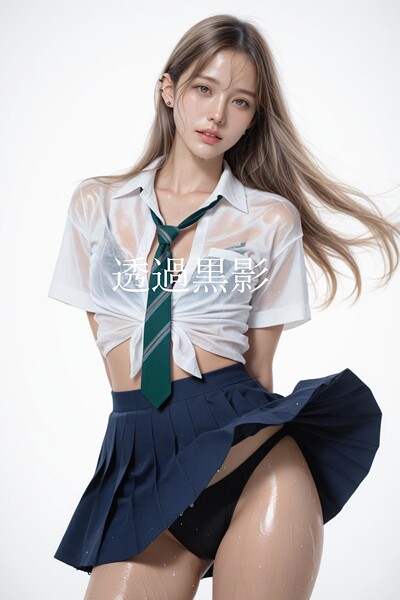 【白の世界に暴かれる、漆黒のコントラスト。】「白い背景」という純真な空間に、場違いなほどの官能が滴ります。水分をたっぷりと含み、肌に吸い付く「濡れ透け制服」。白ブラウスは透明な膜へと変貌し、彼女の秘めた熱量を包み隠さず露呈させています。動きに合わせて「スカートひらり」と舞い上がる瞬間、その奥に隠されていた「黒パンティー」が鮮烈に主張します。濡れて肌に密着した生地越しに浮かび上がる、漆黒のシルエット…